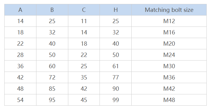 Commonly used T-slot and matching bolt size